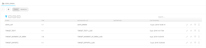 - Marigold Engage — An export to Engage is performed and creates one relation to the Audience list that is selected in the universe properties. This relation contains the fields selected in the export definition. Note that you can only select'Marigold Engage'if 'Marigold Engage integration' is selected in the universe properties!