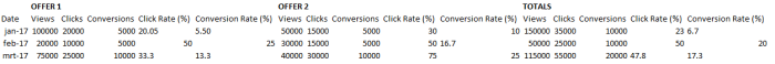 - All selected offers are in there with the name, number of views, clicks, conversions, click rate (%) and conversion rate (%) for each offer.