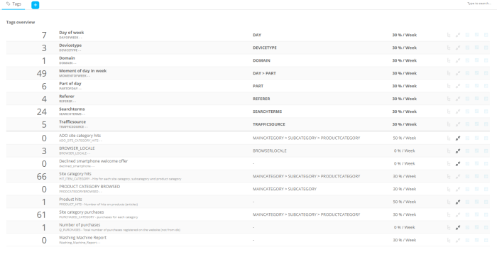 - Tag value hit counts: A time line with the number of hits for the selected tag value