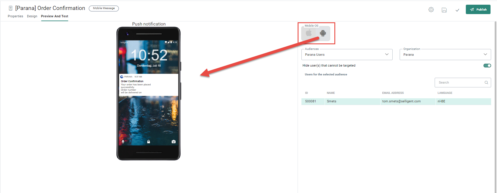 On the Preview And Test screen now only the device type that’s set as a filter is enabled (only Android, only IOS, or both).