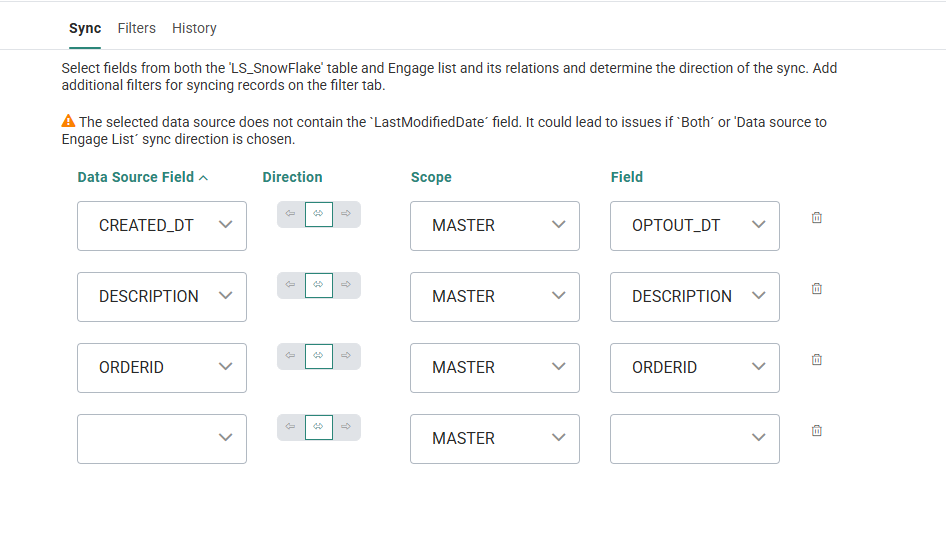 - Monitor the status of the synchronization and configure mapping between Engage and Snowflake