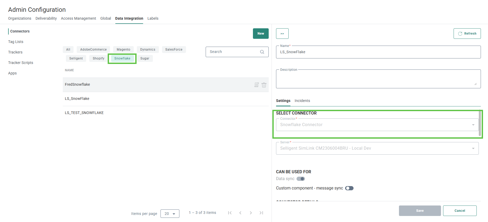 In the Admin configuration, under Data Integration/Connectors, a new connector for Snowflake can now be created: