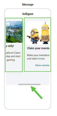 The preview of the messages contains a scroll bar to browse through the different rich cards in the carousel: