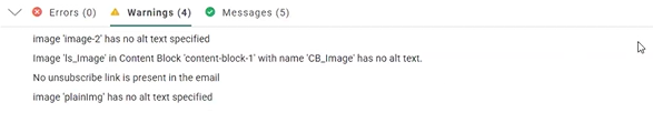 When adding an image to a message without providing an alternative text, the user will receive a warning about this and will be prompted to add an alt text for each of the images added to a message.