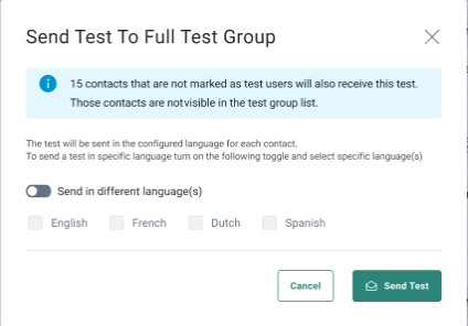 However, selecting to send the test message to the full Content Test Group will still include the real contacts, even if they aren't displayed.