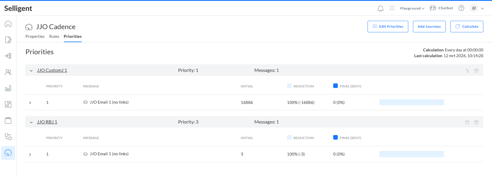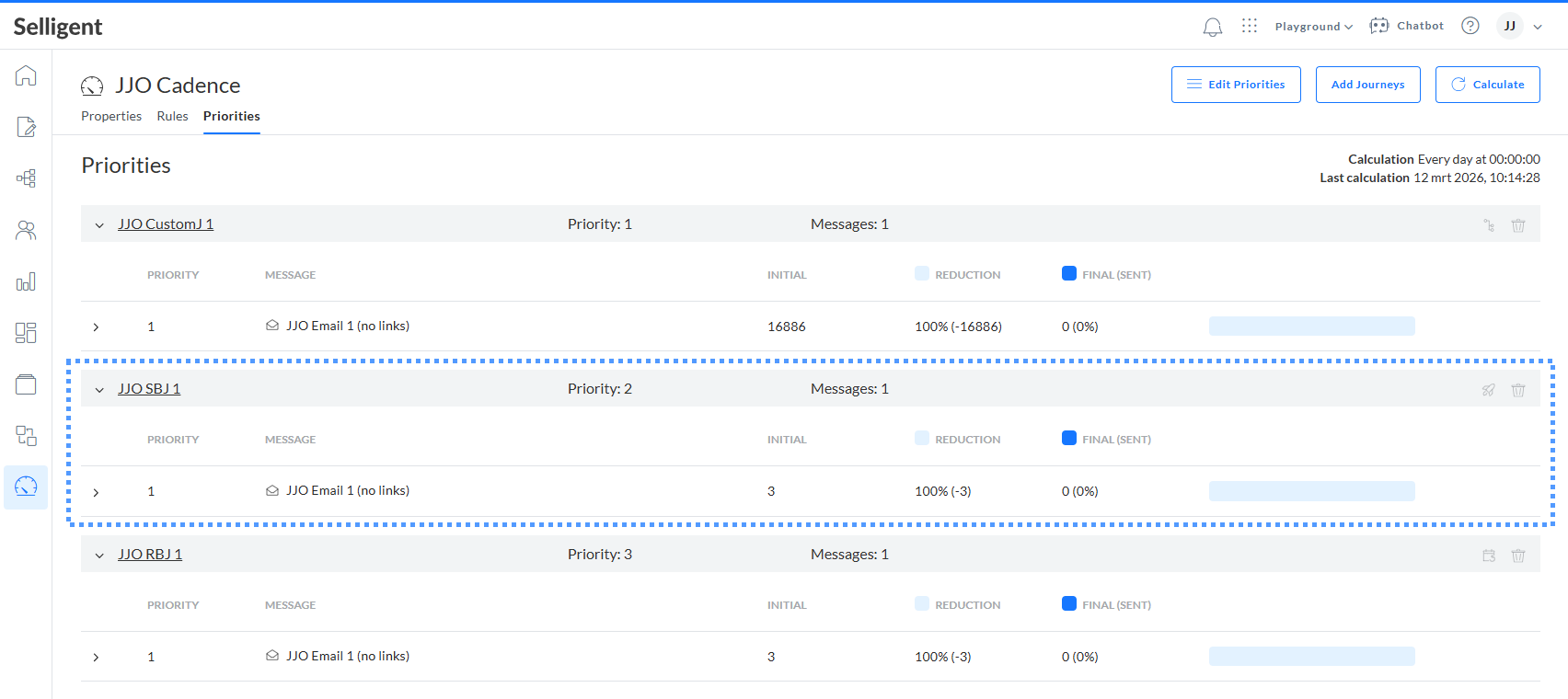 Journeys that ended and have become irrelevant for the Cadence plan—meaning defined rules in the Cadence plan would no longer take the journey into account—are now automatically removed from the Priorities screen. Only relevant journeys are displayed.
