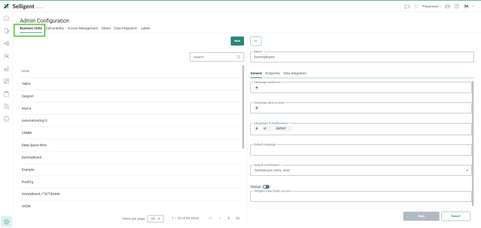 We will be aligning the Selligent terminology with the other tools, meaning that terms like tenant and Business unit will evolve into respectively Organizations and Business units, where an Organization can have one or more Business units.