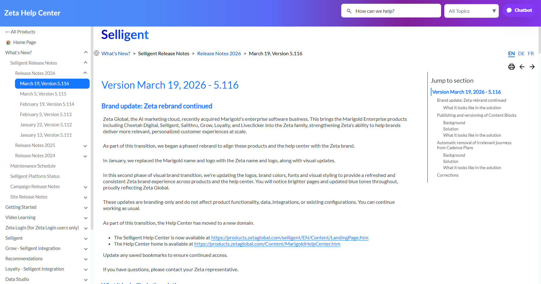 With this release, the Selligent help center has been restyled accordingly. You will notice updated blue tones, a newly used font, and other styling updates throughout the help center articles.