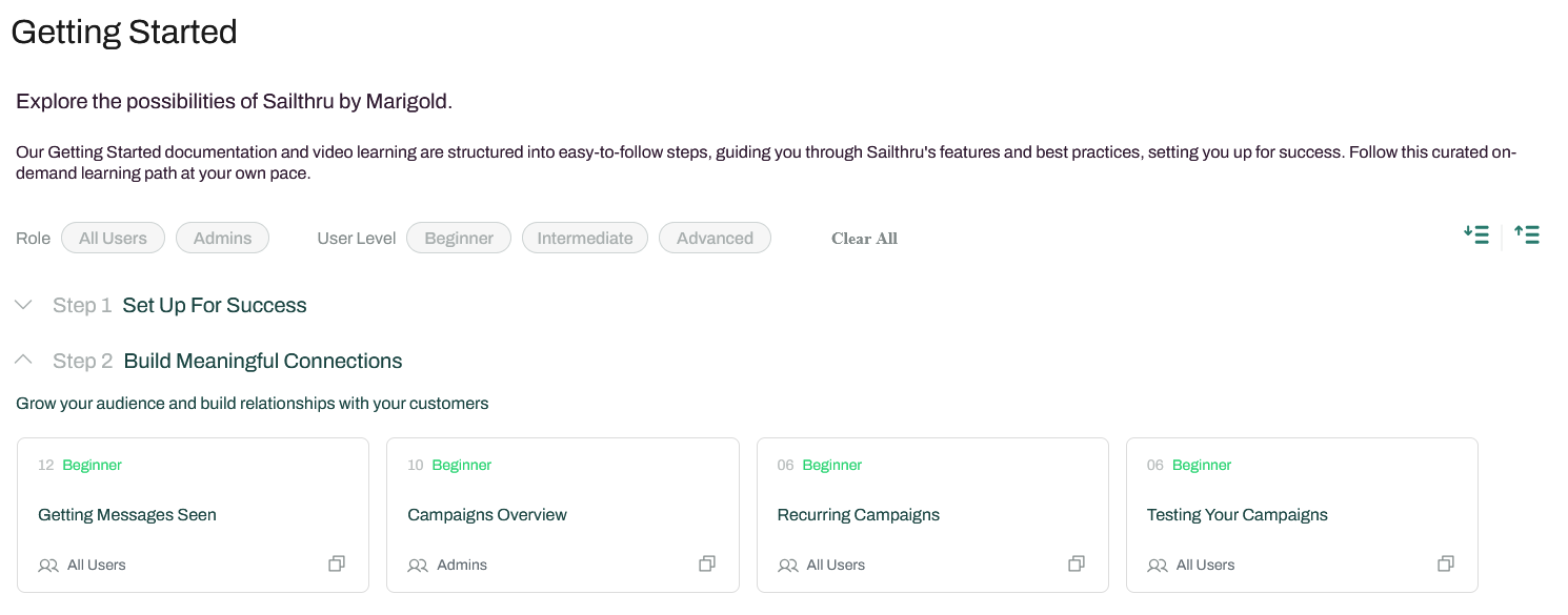 For example, if you're onboarding a new admin, simply filter for "Admin" and "Beginner" content, and you'll instantly have a perfect learning path ready to go!