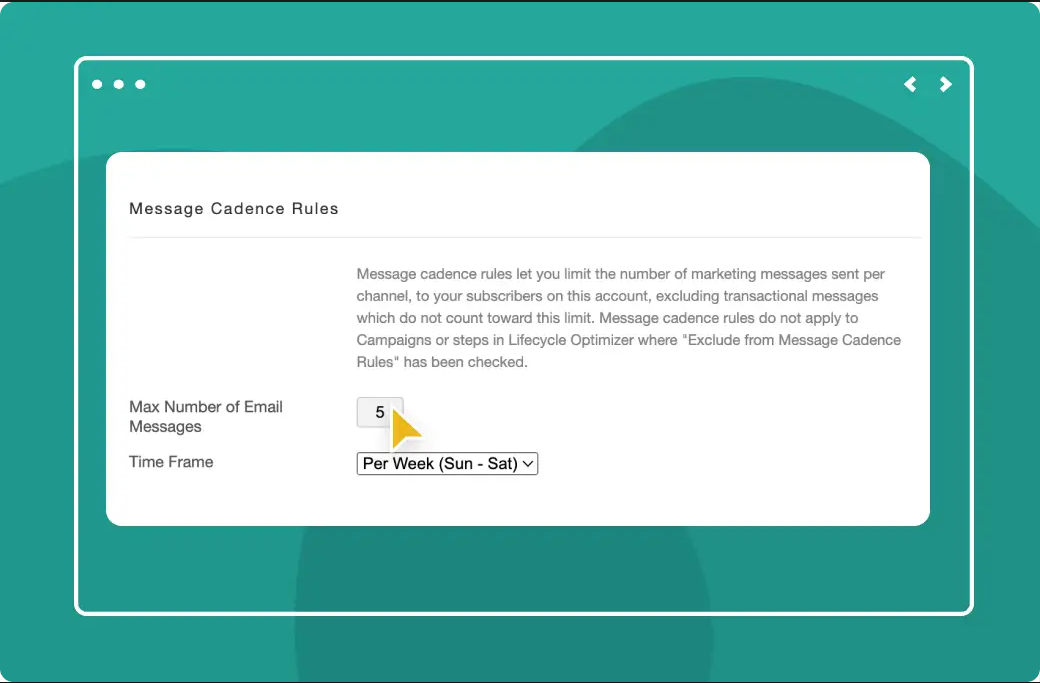 Exclude messages sent via campaigns, Lifecycle Optimizer (triggered flows), and API from following the Message Cadence rule(s) to ensure critical marketing messages reach their subscribers.