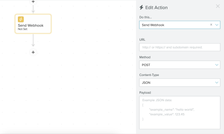 - In your Lifecycle Optimizer flow, select Send Webhook under the Actions drop down menu: