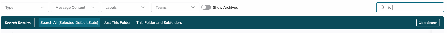 Search all content or within a folder. If you're within a folder, you can search just the top-level folder or the folder and subfolders.