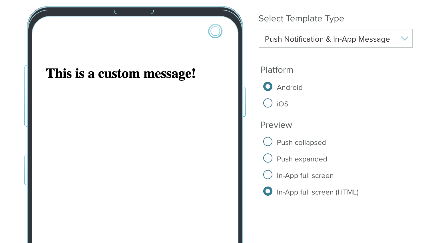 Build custom templates in the Push / In-App Template Editor to deliver curated messaging.