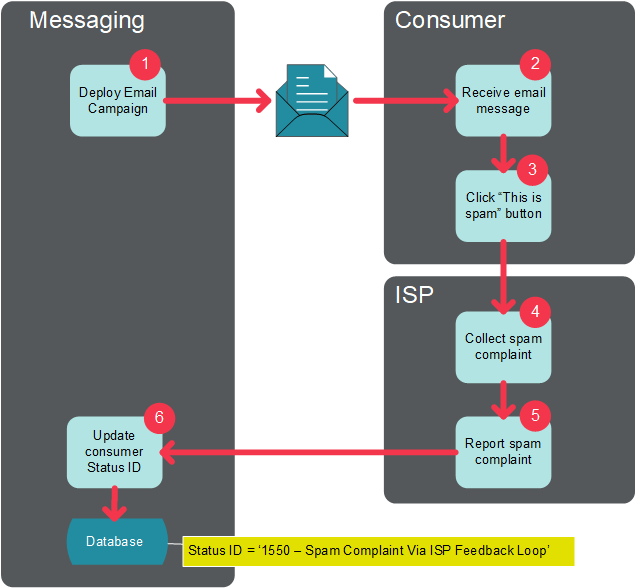 If a consumer makes a spam complaint, the ISP collects that complaint and reports it back to the Cheetah Digital by Zeta platform. The agreement between email vendors like Cheetah Digital by Zeta and the ISPs essentially states that the ISPs will perform this complaint reporting service, and in exchange, Cheetah Digital by Zeta will take the appropriate action to treat this spam complaint as an opt-out request.