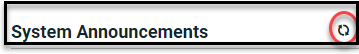 To refresh the System Announcements section, click the refresh button (double-arrow icon).
