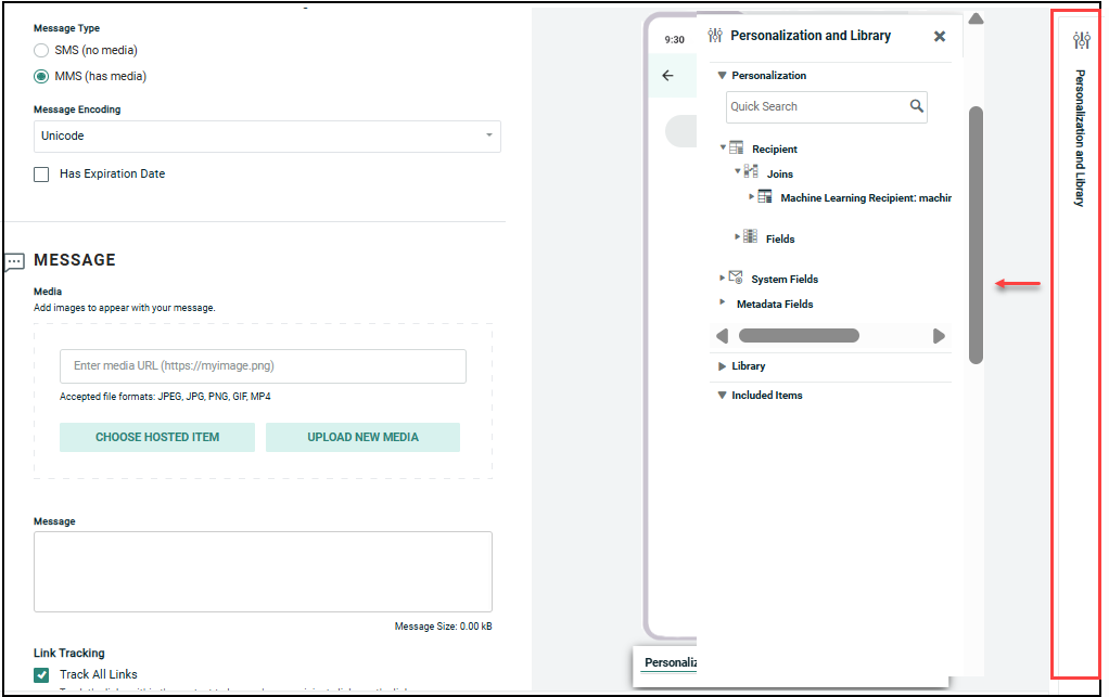 The available personalization fields are displayed within the Personalization and Library Pane on the right-hand side of the screen.