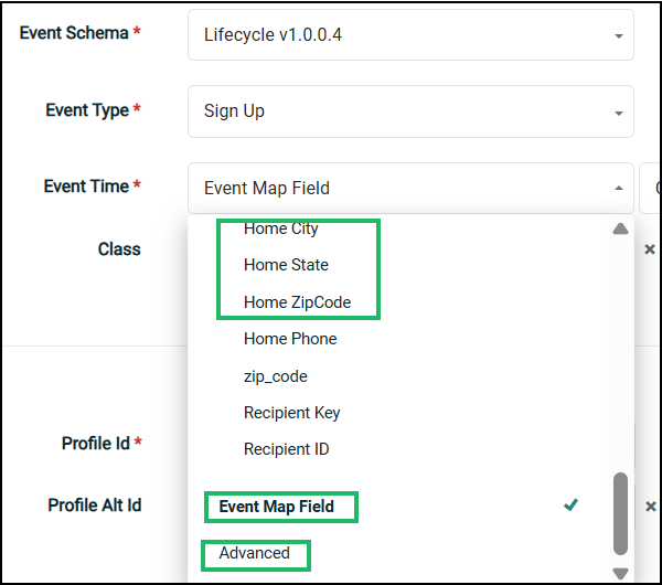 Mapping event map fields