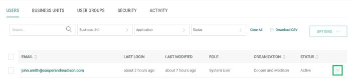 1. Select the App Access tab. This tab displays all the Business Units and applications to which this user has been assigned.
