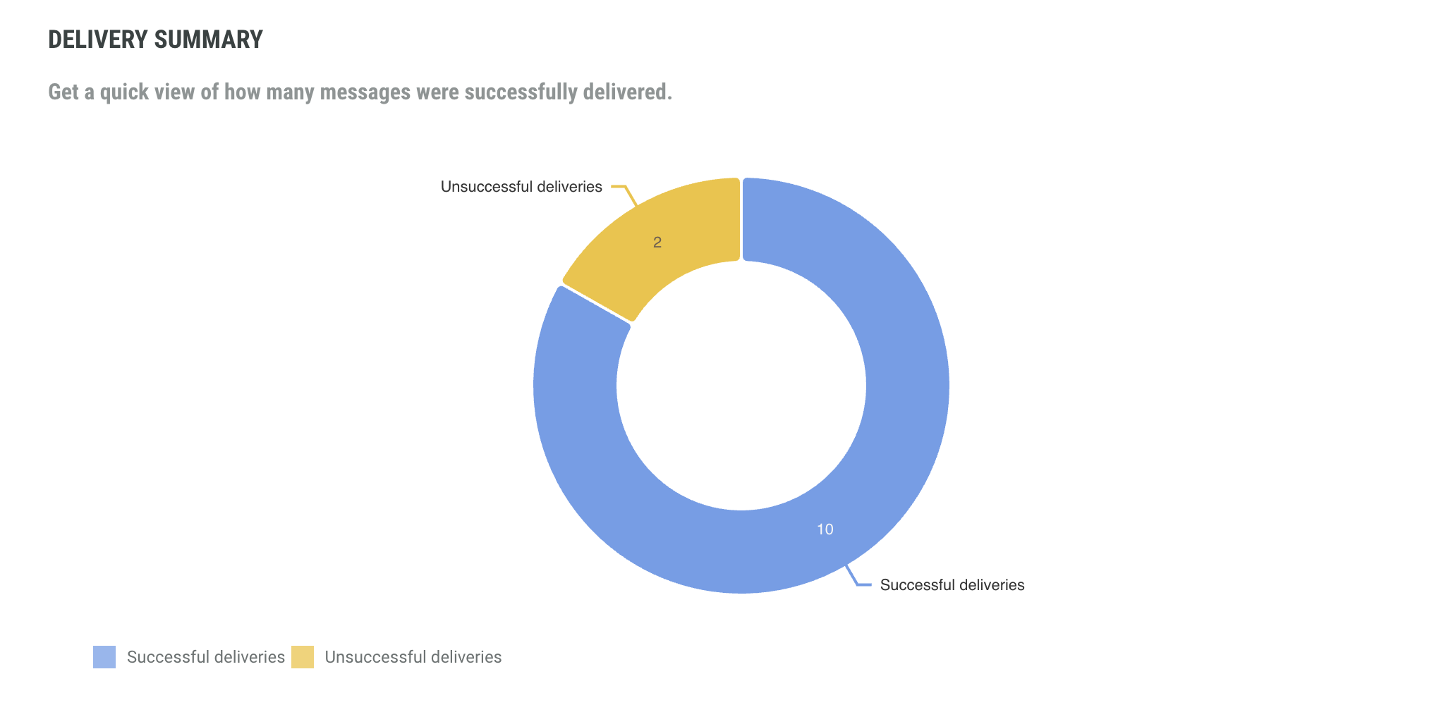 Delivery Summary widget offers a quick view of how many messages were successfully delivered.