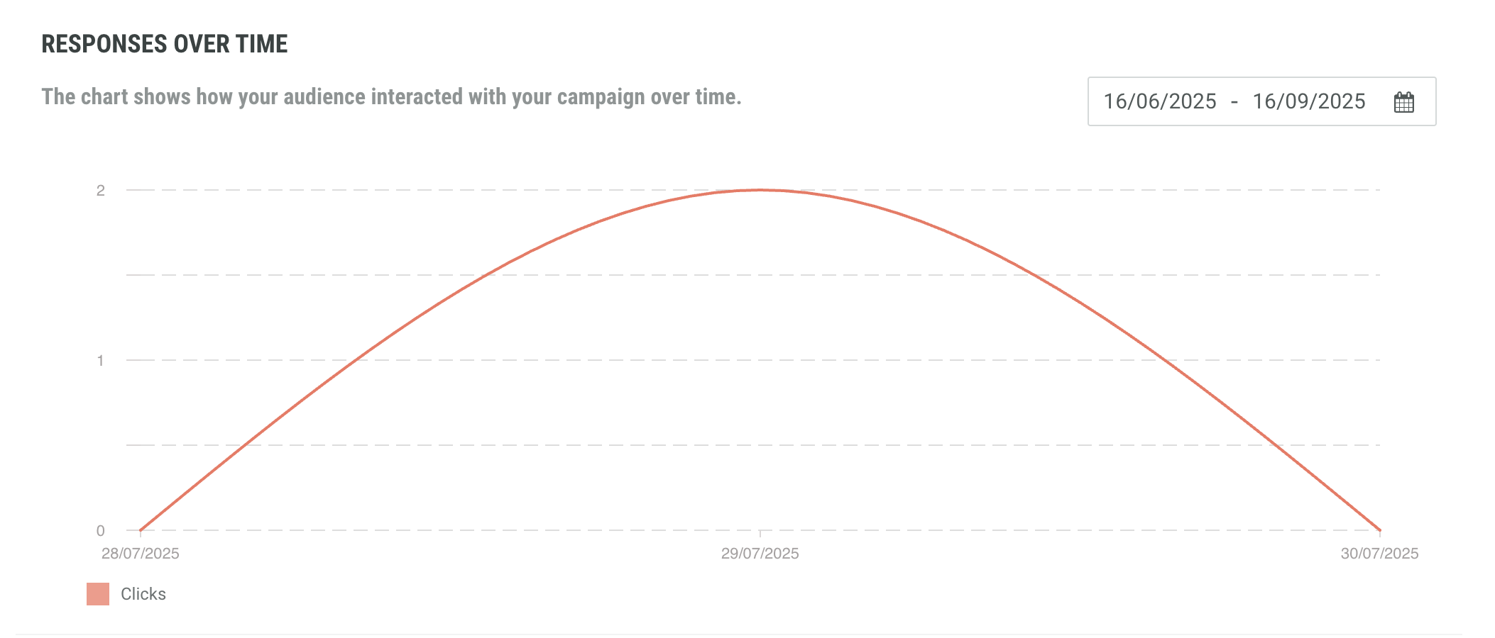 Responses over time widget is a time line of click and reply activities showing how these activity vary over the selected time period.