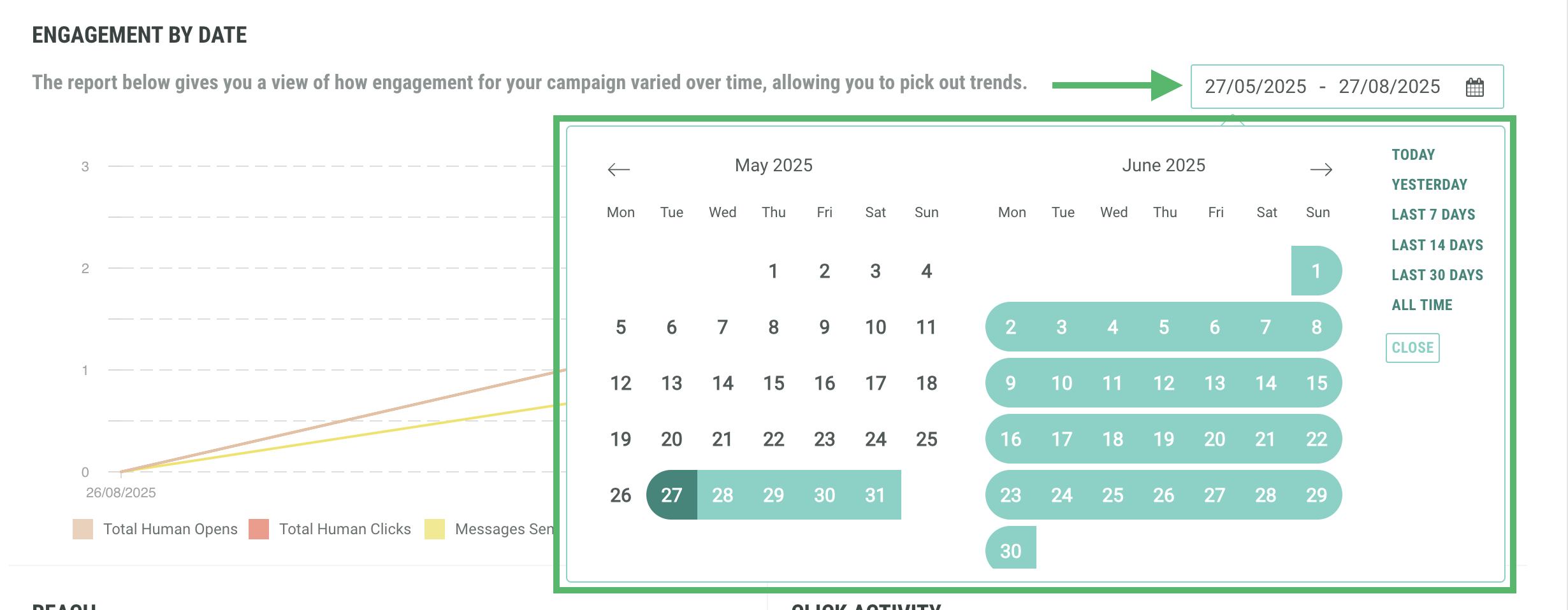 The Engagement report provides marketers with insights on how well their campaigns are doing and if they are creating engagement. Are your campaigns reaching the intended audience, are customers opening your campaigns and are they engaged with your content? Are they clicking through?