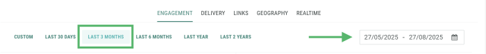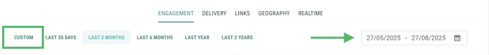 This report provides live engagement reporting (emails sent, opened, clicked, hard and soft bounced, unsubscribed) and show how respondents are engaging with your campaigns in real time. The graph is continuously evolving within a time frame of less than a minute.