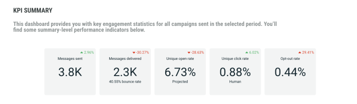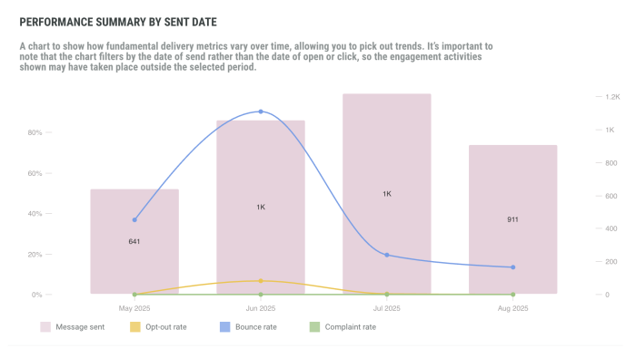 - Percentage of opt-outs — how many of the delivered messages resulted in an opt-out