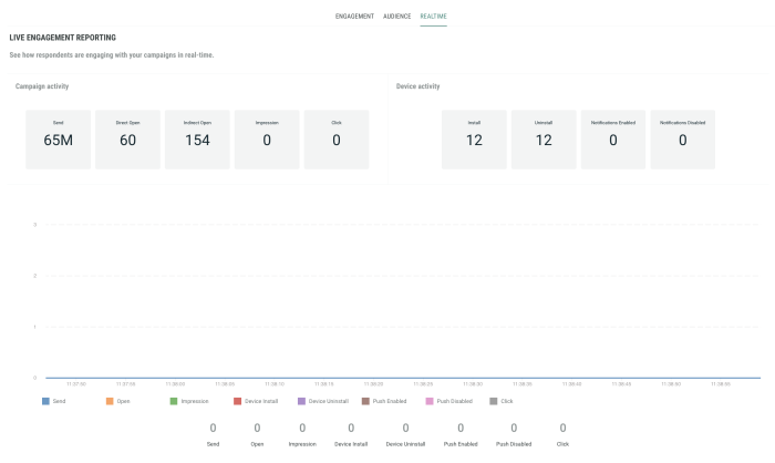 This report provides live engagement reporting (emails sent, opened, clicked, impressions, unsubscribed) and shows how respondents are engaging with your campaigns in real time.
