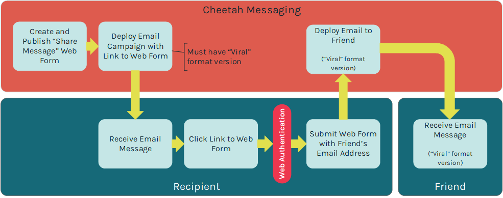 "Share Message" is a special Web Form type designed specifically for the Forward-to-a-Friend feature. The system can optionally capture and store the friend's email address, but if you do so, the friend's email address will not be added as a separate record in your database. Instead, the friend's email address will be stored as an attribute on the original recipient's record.
