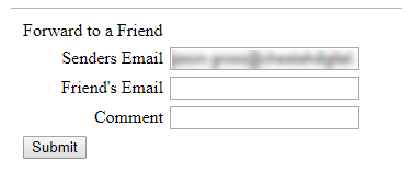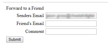 At this point, we've created a very simple Web Form that will display the recipient's email address in the first field. The recipient can then enter his or her friend's email address, enter a comment, and click Submit.