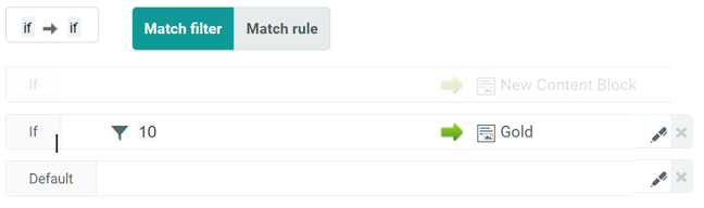 The IF > ELSE IF conditional statement is useful if you know you want a recipient to fall into only one Rule / Block Pair, and therefore to receive only one Content Block. The platform works from the top down, evaluating recipients against the first rule. Only the non-matching recipients drop down to the subsequent rules. Once a recipient matches a Rule / Block Pair, they are removed from any further evaluations.
