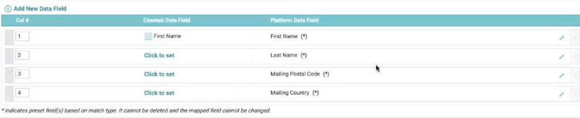 10. From the Cheetah Digital Data Field drop-down menu, select the field on the Campaign's source table that maps to this ad platform field.