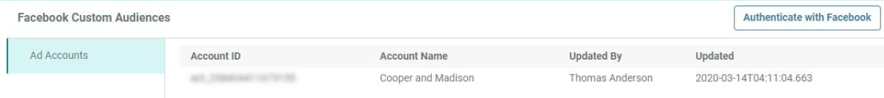9. The selected Ad Account (or Accounts) is displayed.