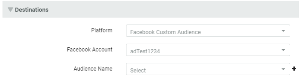1. Within the Destinations section, from the Platform drop-down menu\elect either Facebook Custom Audience or Google Customer Match.