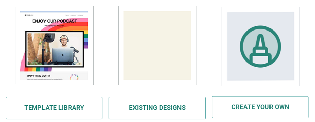3. Your options are the Template Library, Existing Designs, and to Create Your Own design.