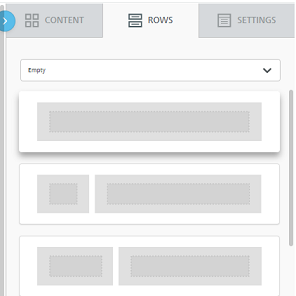 3. Drag and drop the desired row structure from the right-hand panel, into the desired location in the Workspace. The Content Designer supports a variety of rows featuring one, two, three, or four columns.