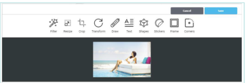 The Content Designer provides a built-in Image Editor for Image and Icon content items. The Image Editor allows you to apply a variety of different options and effects to an image, such as filters, stickers, and text.