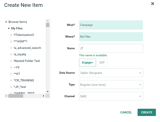 The Campaign creation steps and features vary between the two data sources. This document focuses only on using a Cheetah Digital by Zeta table as the Campaign data source. For more information on SMS Text Campaigns that use EDP as the data source, please see the Cheetah Digital by Zeta Online Help.