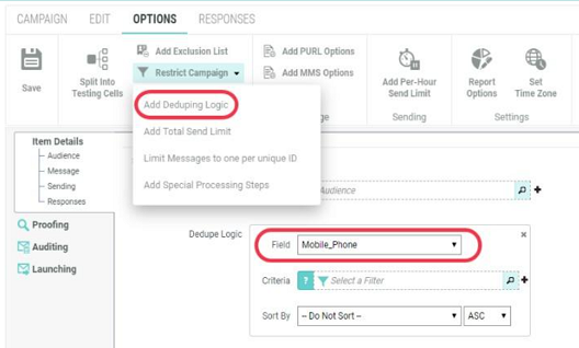 1. In the Tool Ribbon, click Options > Restrict Campaign.