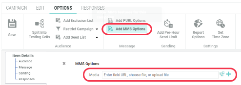 1. In the Tool Ribbon, click Options > Add MMS Options.