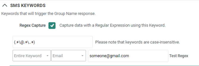 Entire Keyword: Used if the recipient is expected to send ONLY the desired data to be captured, without any other keywords or information within the message.