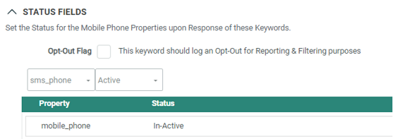 - Opt-Out via Reply — Change the Status ID field for this Phone field to "Opt Out Via Reply."