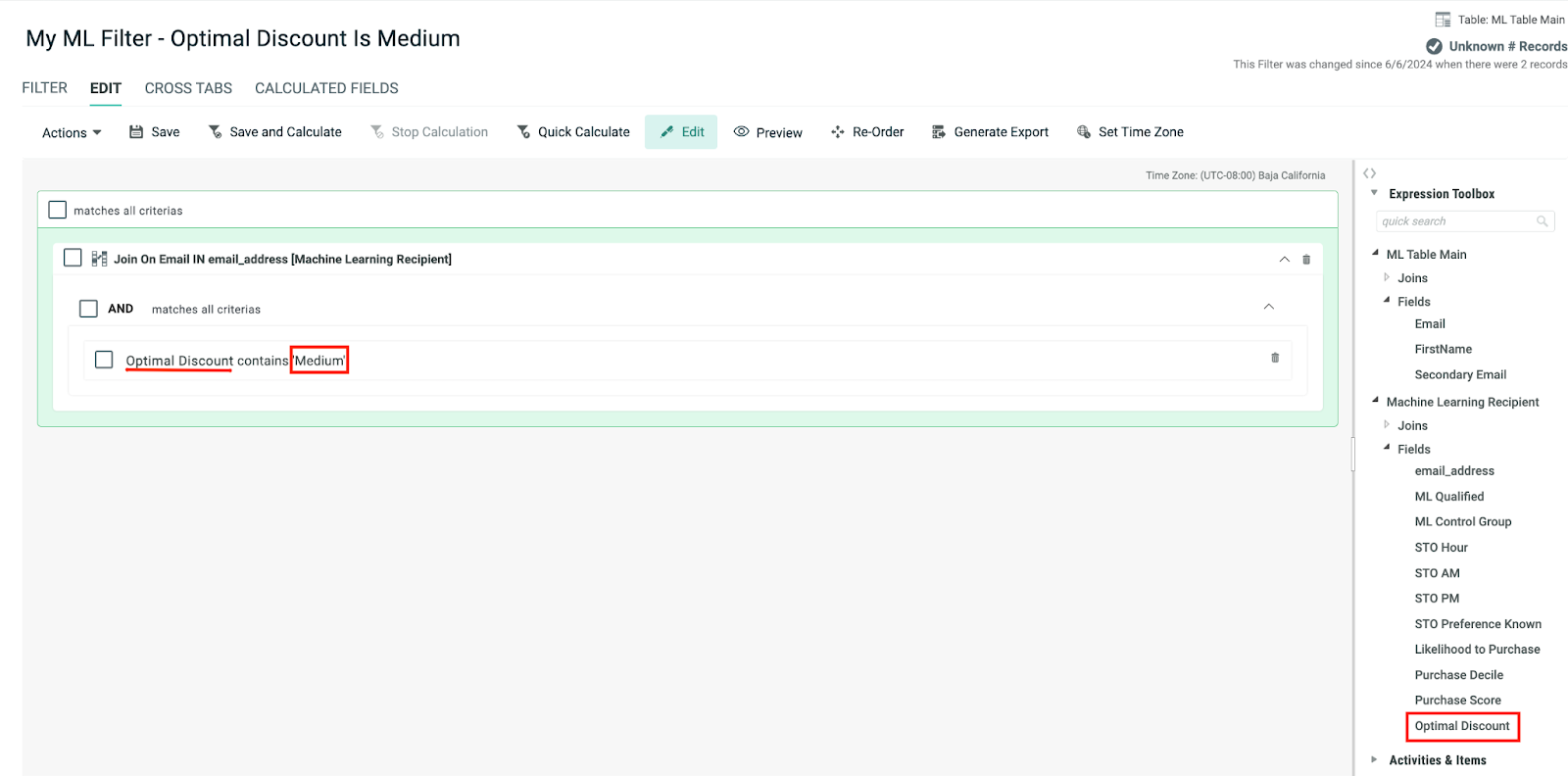 When the Personalized Send Time and Margin Optimization models are enabled in your account, the Machine Learning Recipient Table will be available in the filter for entity joins.