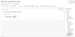 Whether you're using entity or property join, we recommend the creation of three reusable filters using the “Optimal Discount” field based on the Optimal Discount score with values of Max, High, Medium and Low as below:
