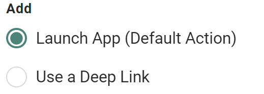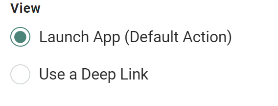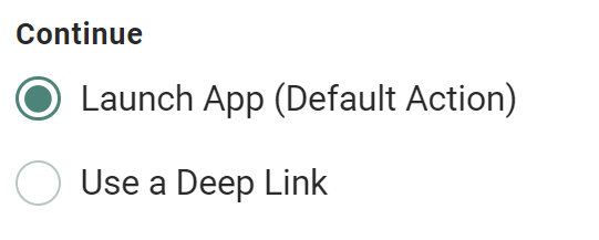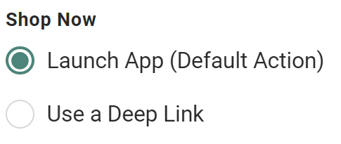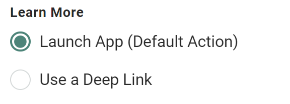 Buttons: Select "Learn More" from the list and click "Deep link" and provide the link to the section of the app to be opened when the button is clicked by the recipient