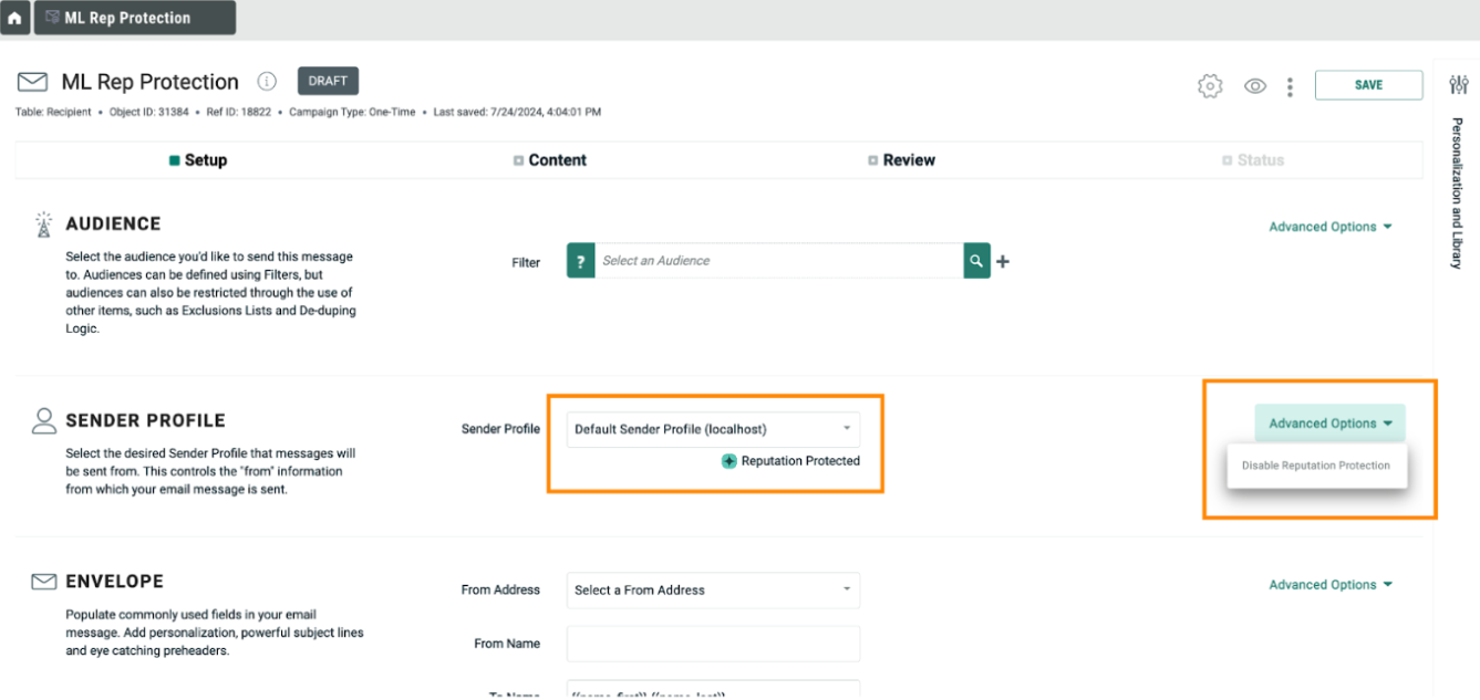 Enabling/ Disabling Reputation Protection in Email Campaign