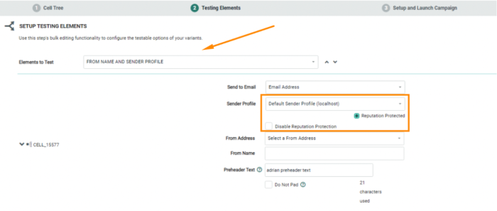 For cells and splits campaigns, if a campaign is split by “From Name and Sender Profile”, you can define the Reputation Protection setting at the cell level.