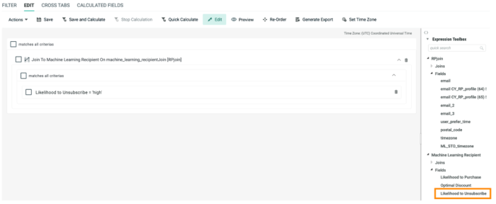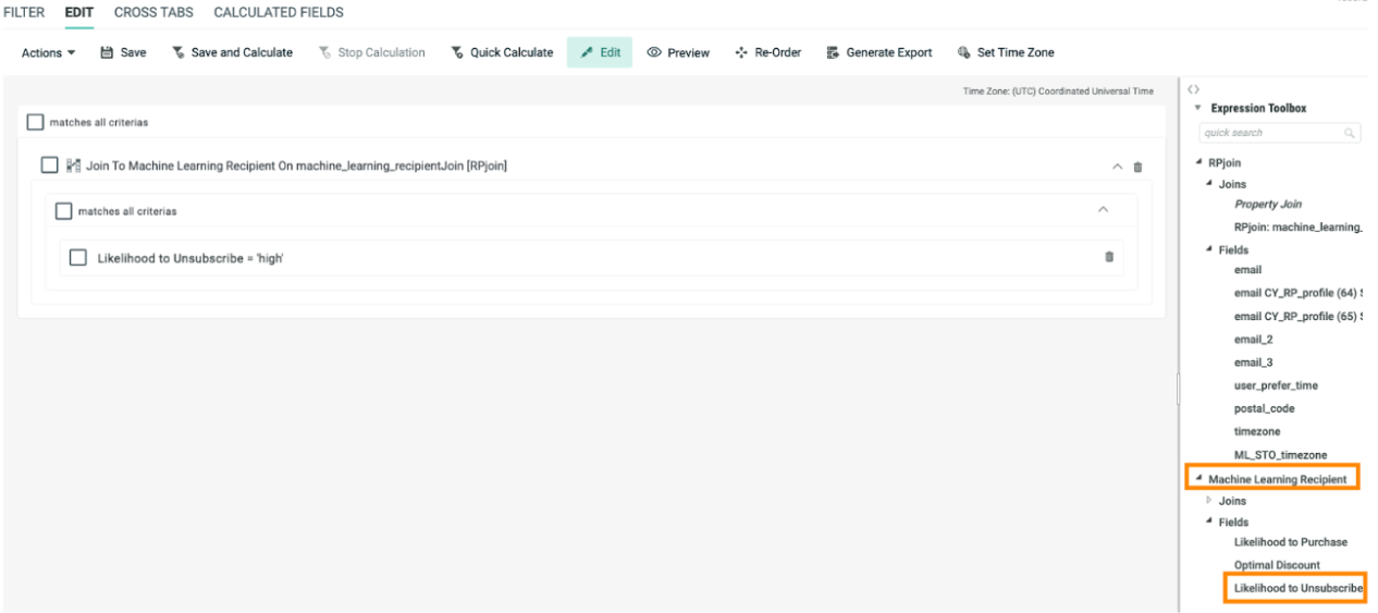 When Reputation Protection feature is enabled for your organization, you can also use the model’s related field - likelihood to unsubscribe in Filters for segmentation purposes through Cheetah Digital Table Join.