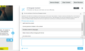You can also use the Platform AI Assistive AI in the Advanced Editor to write marketing copy and CTAs.