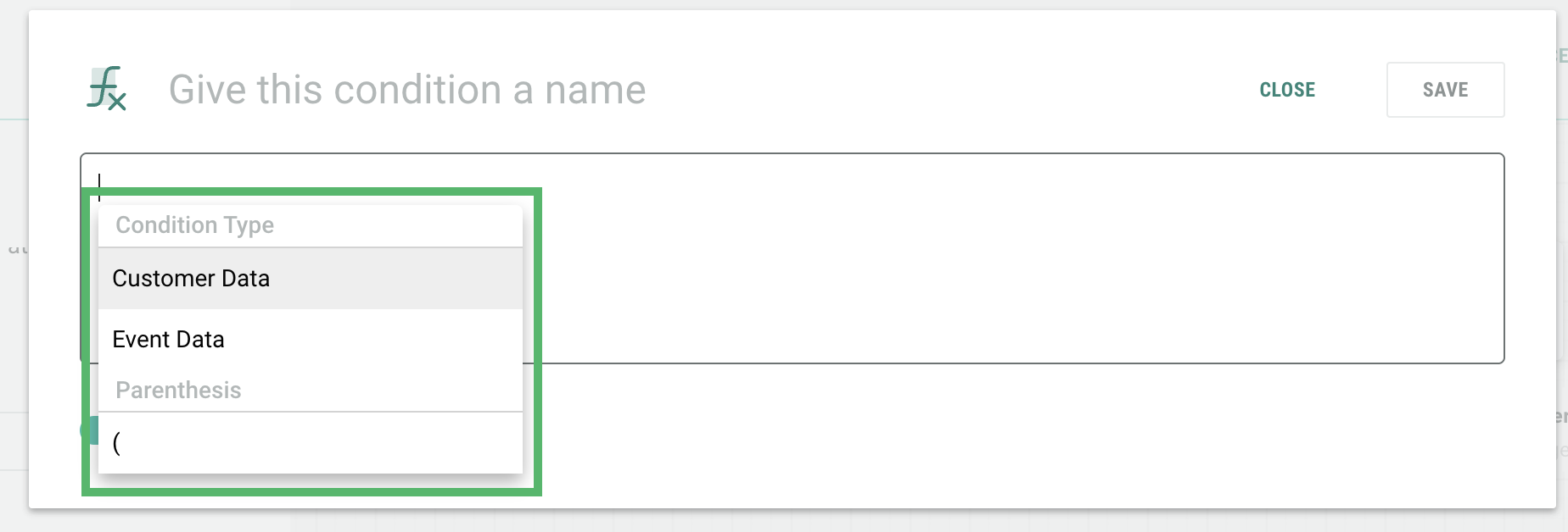 • Selecting Event Data allows you to build conditions based on customer behaviors, such as interactions with your campaigns or specific actions they take